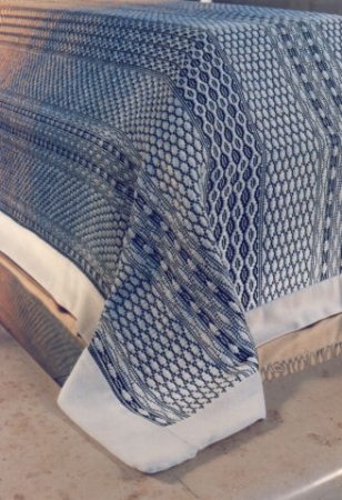 Gunilla Ellis har gjort bårtäcken sedan 1989 och har vävt ett 20-tals täcken hittills. De vävs i Smålandsväv, som ger både en färgstarka sida och en som är sobrare, på grund av att lintrådarna binds med bomullsvarpen. Stockholms stads kyrkoförvaltning har beställt tre täcken av Gunilla till Skogskyrkogården. Kyrkorna i Tännäs-Ljusnedals församling, Ramsjö, Kvicksund, Bispgården, Grums, Västerås och Gideonsbergskyrkan använder även de Gunillas bårtäcken, liksom Jämtlands Läns Landsting. Foto: Göran Gårder och Jocke Lagerkrantz